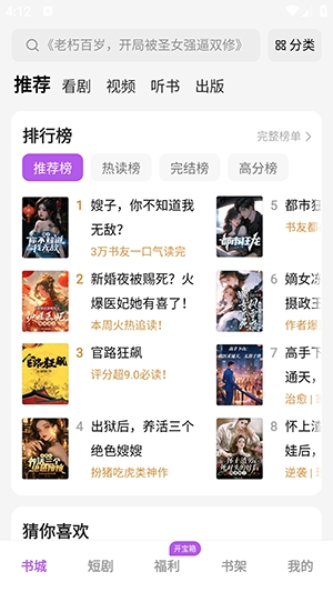 2、在书城选择喜欢的小说或直接点击上方的搜索框进行搜索。