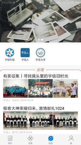 宇信协同办公app是一款便捷稳定的办公平台,为大家提供了考勤、报销、借款等多种任务,非常的方便稳定,直接让大家更加快速的完成工作任务,还可以添加待办事项,还有专门的提醒功能,让大家不用担心忘记重要的工作等。