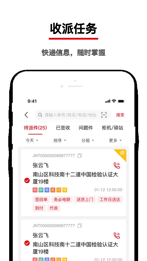 3、当需要查询快递相关信息时,可以通过输入立即搜索,也可以让用户及时处理日常的各种任务。