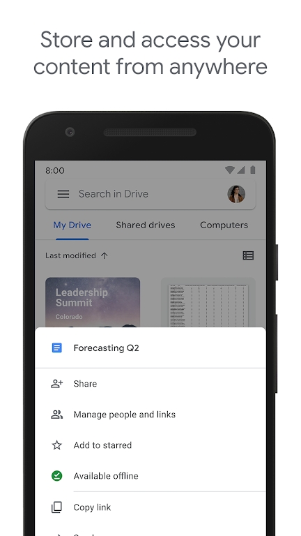 googledrive是一款不错的云端储存同步平台,在这里用户使用googledrive传输你的数据在云端,多设备能够同步各种数据,非常方便大家传输资源,有免费的存储空间,一边来说用户都够用,除非你的数据很多就需要购买存储空间,这么强大的云盘工具你不容错过快来下载收藏吧!