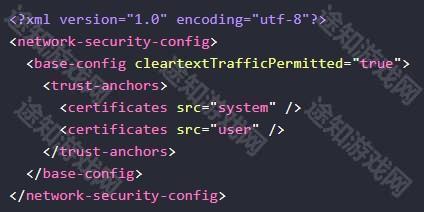 注意:请在发行版本中移除此配置,更多有关网络安全配置文件资料,请参考:Android开发文档。
