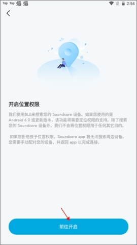 2、页面显示需要开启位置权限,点击下方的“前往开启”将授予app位置权限。
