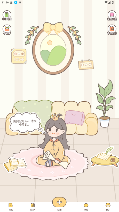 下载并安装小贝记账app,打开后,进入主界面,点击记账按钮。