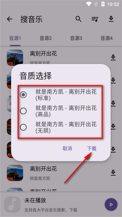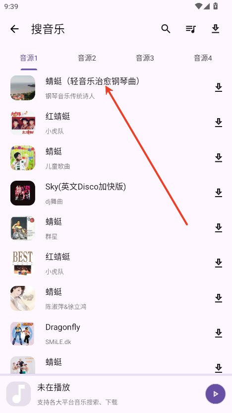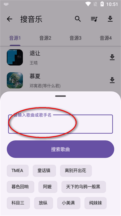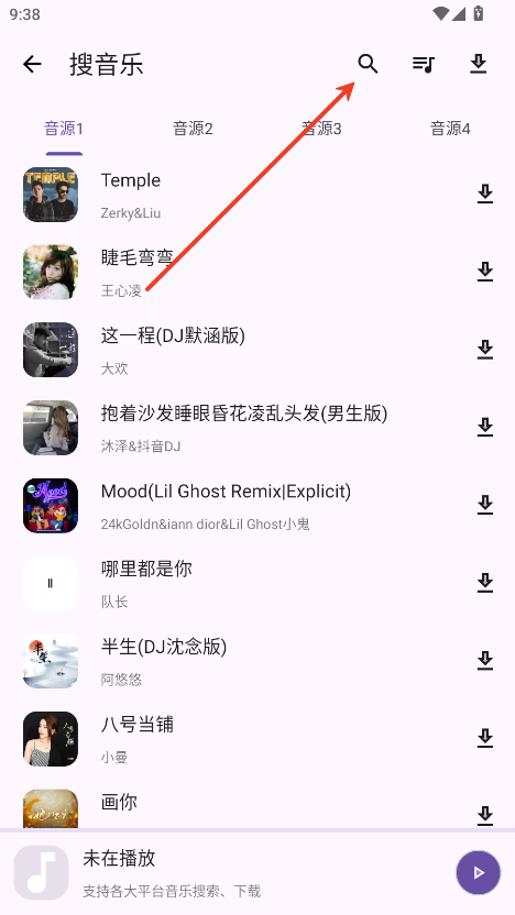 2.进入搜音乐界面,可选择音源后点搜索按钮。
