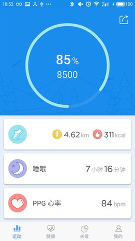 3、在主界面上选择运动或睡眠功能,点击开始追踪,应用会自动记录相关数据。