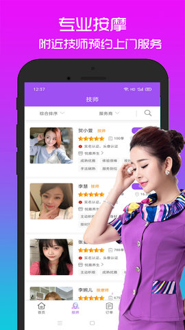 3、浏览技师列表,查看他们的服务项目、价格和用户评价,选择您满意的技师。