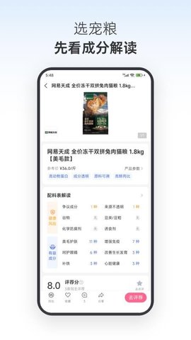 成分解读功能:详细分析宠粮成分,帮助用户选择适合自己宠物的饮食,确保营养均衡。