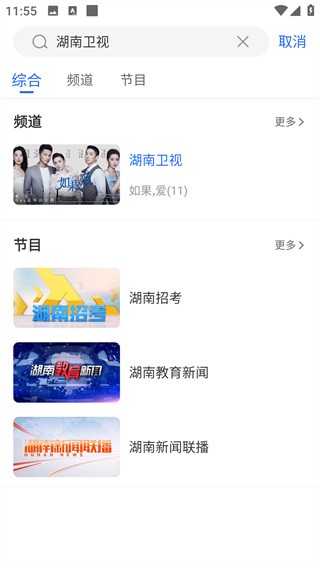 3、跳转至搜索结果,点击频道标签的选项即可进入;