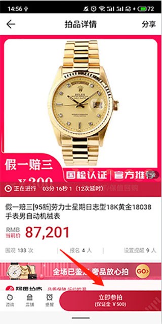 2、点击“立即参拍”选项,然后缴纳保证金即可参加拍卖。