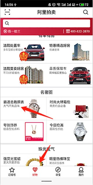 阿里拍卖是阿里巴巴集团旗下的专业资产交易平台,提供司法拍卖、资产处置、高端消费品拍卖等服务。平台与法院、公安、银行等权威机构合作,涵盖房产、汽车、股权、珠宝等品类,交易公开透明且支持一键贷款、拍后代办等全链路服务。想要低价捡漏法拍房、罚没资产的用户可以下载查看,支持假一赔三,七天无理由退货,支持免费鉴定,一物一证等服务。、
