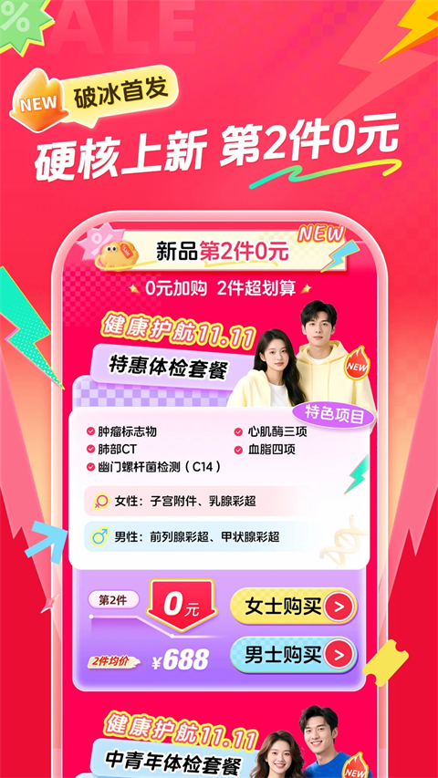 1、购买体检,提供多种多样的体检套餐、齿科、疫苗服务供用户购买及预约。