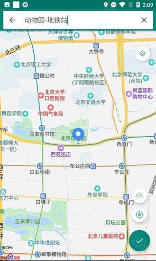 2、在地图中搜寻想要模拟的位置后点击右下角勾号按钮。