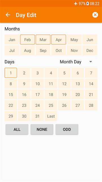 例外:包含事件上下文条件,或重复的,或非连续时间上下文条件的配置文件会显示两个绿色箭头,这意味着所有任务都会立刻执行,因为配置文件的激活和非激活状态是瞬发的。