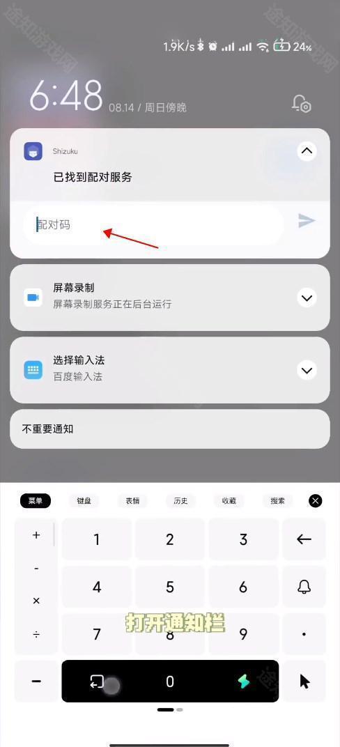 6、然后在通知栏下拉中输入配对码进行配对