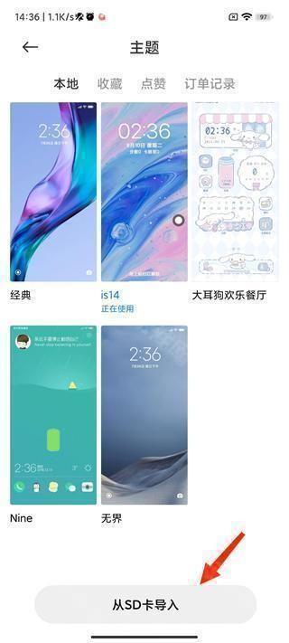 3、进入主题界面后,点击下方的从SD卡导入并选择相应的.mtz文件即可