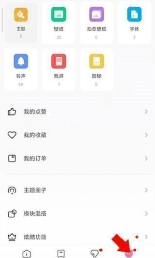 2、在我的界面中点击主题选项