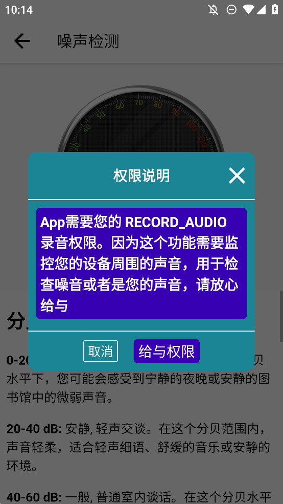 1.打开软件后点击开始检测,它会自动分析环境声音并显示实时频率图表,帮助了解噪声水平