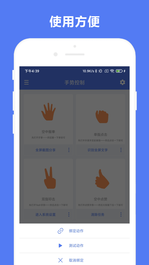 通过绑定手势后可以让用户操作手机上的各种APP都能更加的快捷方便