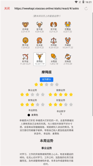 4、用户还可以查看自己的星座运势,还可以设定自己的星座为默认星座。