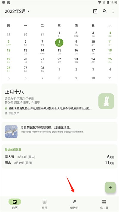 可以查看每天的节日、节气、日程、笔记、纪念日等;