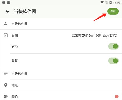 4、然后选择时间、地址,标记颜色,最后点击保存就添加好倒数日啦!