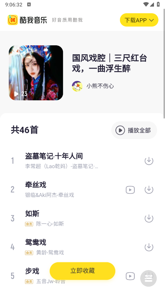 4、进入播放页面,即可开启听歌体验,就还可以进行下载歌曲。