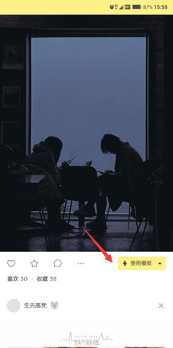 4、点击模板界面的“使用模板”,然后从相册中选择一张图片导入,系统会自动将所选的模板覆盖在图片上。