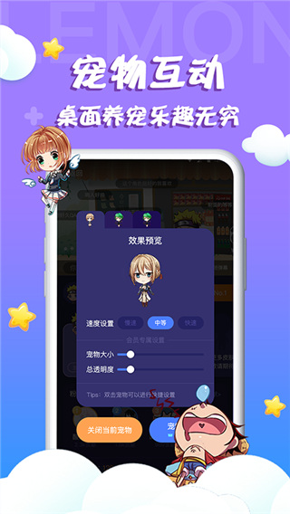 2、互动玩法非常多,可以把自己喜欢的人物养在手机桌面也是一种乐趣,更有每个角色的精美海报推荐。每个角色都有自己独特的动作,各种细节刻画的栩栩如生。会卖萌随机互动,上下跳动和爬墙,左右走动。丰富动作,花样玩法。