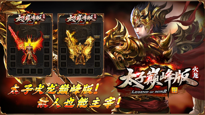 太子巅峰版,180特色火龙单职业版本,集复古、沉默、专属等众多玩法于一身的超爽服!本服升级靠吃经验即可,经验卷所有的怪物都可以爆出,升到顶级非常轻松!装备保值,货币保值,押运镖车又可获取大量经验升级,还可以获得海量元宝奖励,助你轻松度过开荒期!完成主线任务还能够获得年卡、火龙币等超值奖励,让你可以畅快的发育,散人玩家靠肝也能够到终极!