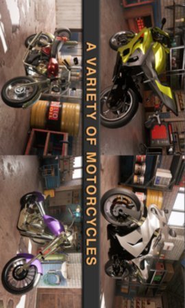 2、丰富的摩托车选择:游戏提供20多种不同的摩托车,每辆车都有独特的外观和性能,玩家可随意选择。