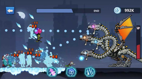 2、收集资源:在战斗过程中,玩家需要积极收集场景中的硬币和能量,这些资源可以用于购买新武器和升级技能。